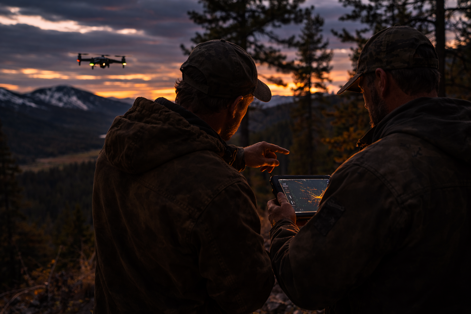 Thermal drones allow us to scan large areas of terrain quickly to locate downed or lost animals. Once detected, we guide hunters directly to the animal’s location.